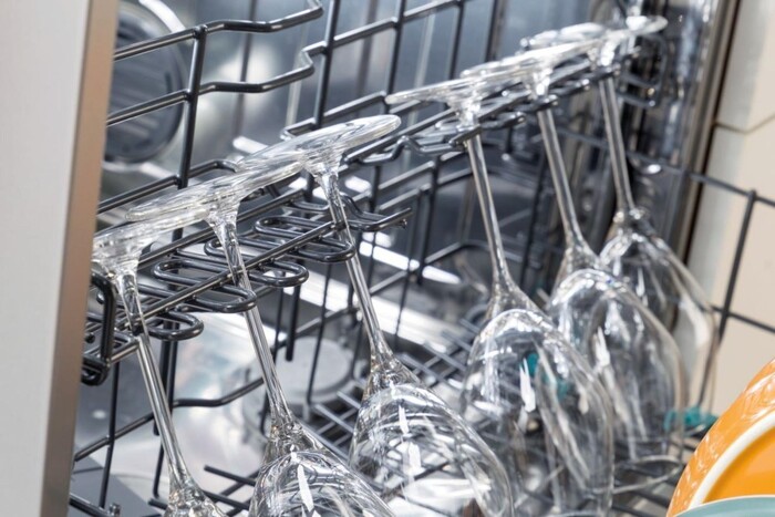 Модель оснащена дисплеем для отображения основных параметров работы и индикацией работы в виде луча на полу. Мощность подключения достигает 1.76 кВт, а потребляемая мощность при работе равна 1700 Вт. В комплект входят корзина для столовых приборов, корзина с регулировкой высоты, держатель для бокалов и инструкция по эксплуатации.