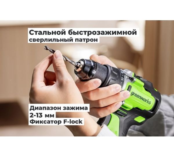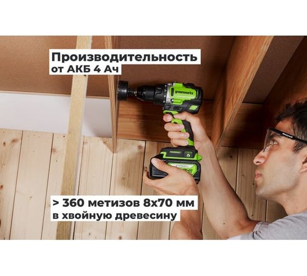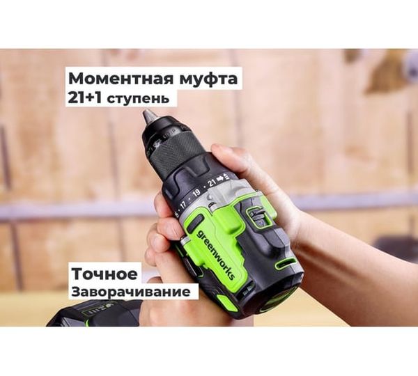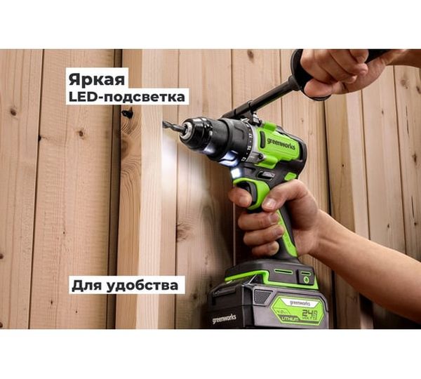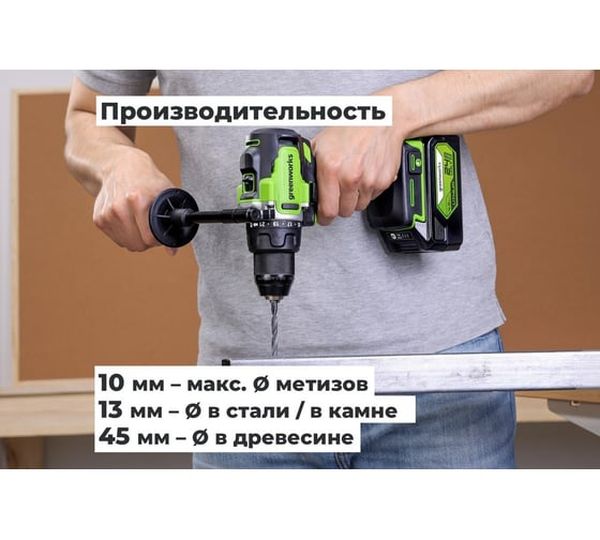 Аккумуляторная дрель-шуруповерт GreenWorks GD24DD90 3707507VUB, 24 В, 90 Нм, 4 А·ч