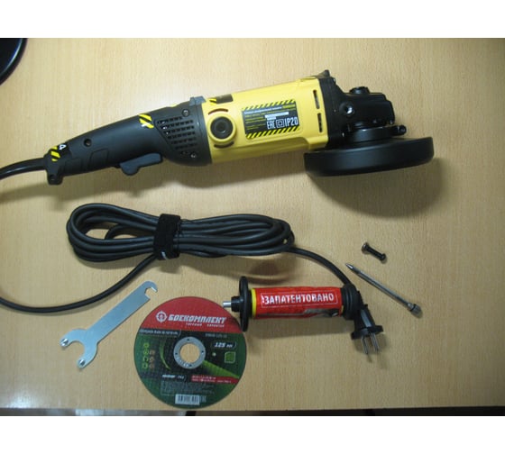 блокировка шпинделя при заклинивании диска, кнопка фиксации пуска, плавный пуск, плавный пускрегулировка оборотов, поддержание постоянных оборотов под нагрузкой, работа по бетону (камню), регулировка положения кожуха без инструмента, электрическая регулировка оборотов