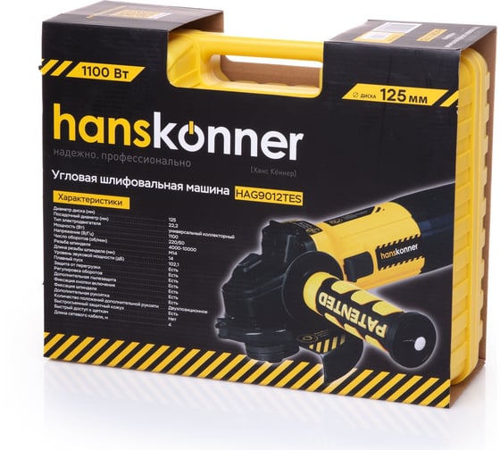 Углошлифовальная машина Hanskonner HAG9012TES, 125 мм, 10000 об/мин, 1100 Вт