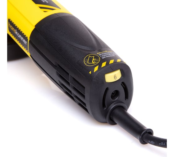 Безопасный двухполюсный включатель с фиксацией облегчает работу в непрерывном режиме и обеспечивает мгновенное отключение Hanskonner HAG9012TES одним нажатием при необходимости, Блокировка шпинделя обеспечивает быструю смену оснастки и повышает производительность труда, Боковая рукоять инструмента оснащена разметочным карандашом с твердосплавным наконечником, Быстросъемный кожух переставляется одним движением под правую и ли левую рабочую руку для повышения безопасности и комфорта в работе, Полное электронное управление двигателем с константной электроникой Electronic Power Manager (ЕРМ) обеспечивает плавный пуск, регулировку и поддержание оборотов независимо от нагрузки, повышая качество работ, Практичная модель с улучшенным управлением для уверенной неутомительной работы в труднодоступных местах и стесненных условиях, Система поддержания постоянного прижимного усилия на щётках «ClockSpring» создаёт стабильный контакт независимо от их износа, поэтому электродвигатель работает с большей отдачей в течении всего срока службы, Система предварительной установки скорости вращения «SetpointVelocity» дает возможность точно подобрать параметры обработки, подходящие для конкретного применяемого диска или материала, Увеличенная стойкость к перегреву, усиленные шестерни редуктора и бронированный ротор гарантируют достаточную прочность при высоких нагрузках, Уменьшенный корпус редуктора позволяет выполнить более глубокий рез, Усиленная защита от пыли оптимизированная внутренняя аэродинамическая схема сохраняет мотор от перегрева и продлевает его ресурс, Эргономичный нейлоновый корпус, стойкий к ударам и низким температурам, обеспечивает долгую и комфортную работу в любых условиях эксплуатации