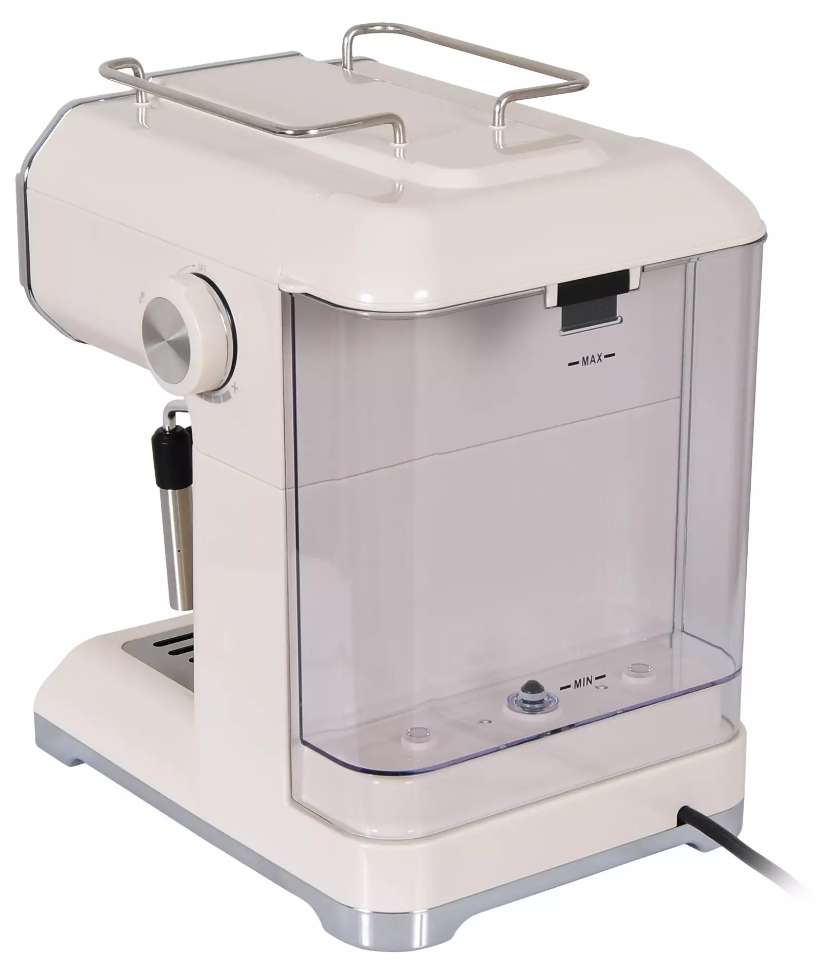 Корпус сочетает пластик и металл в светло‑коричневом и серебристом оформлении, габариты 25x33x29 см и вес около 3,95 кг делают устройство компактным и легко размещаемым на кухне. Мощность 850 Вт обеспечивает рабочий режим бойлера, длина кабеля 0,75 м и гарантия 24 месяца подтверждают рассчитанность на домашнее использование.