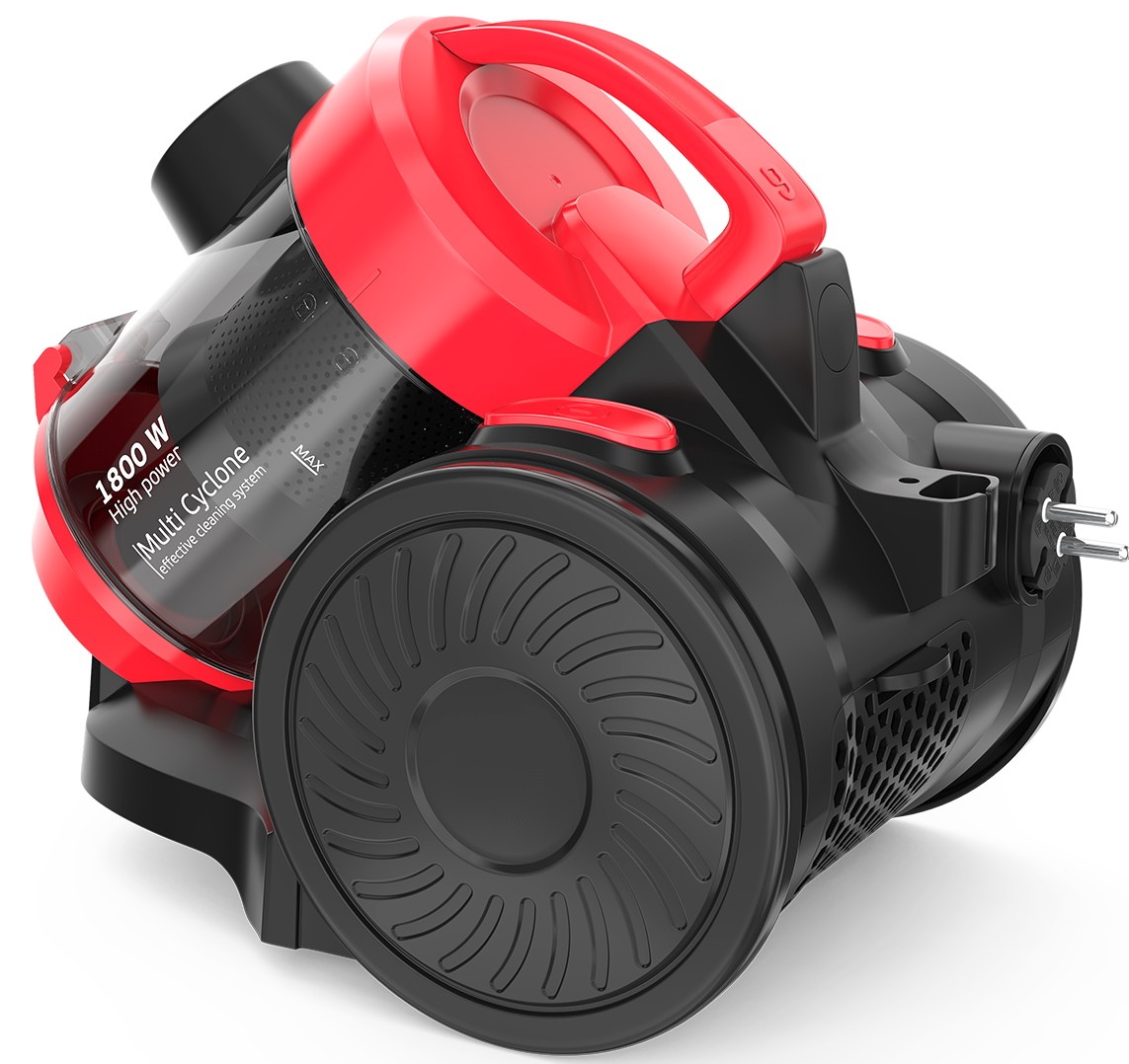 Пылесос имеет компактные размеры — 34х26х19,5 см, что облегчает его хранение и транспортировку. Вес устройства составляет 4,7 кг, позволяя легко маневрировать во время уборки. Вертикальная парковка позволяет закрепить пылесос в устойчивом положении без дополнительной поддержки. Корпус выполнен из пластика красного цвета, что делает внешний вид ярким и стильным, при этом обеспечивает лёгкость.