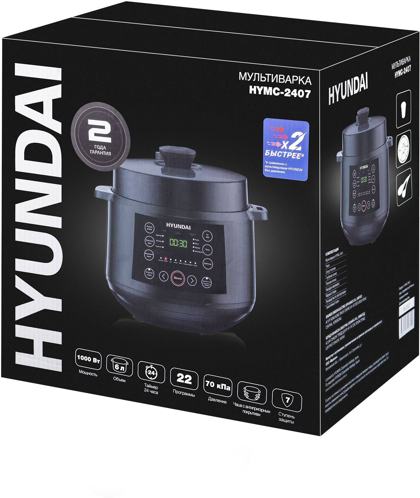 Особенности Мультиварки-скороварки Hyundai HYMC-2407, чёрный