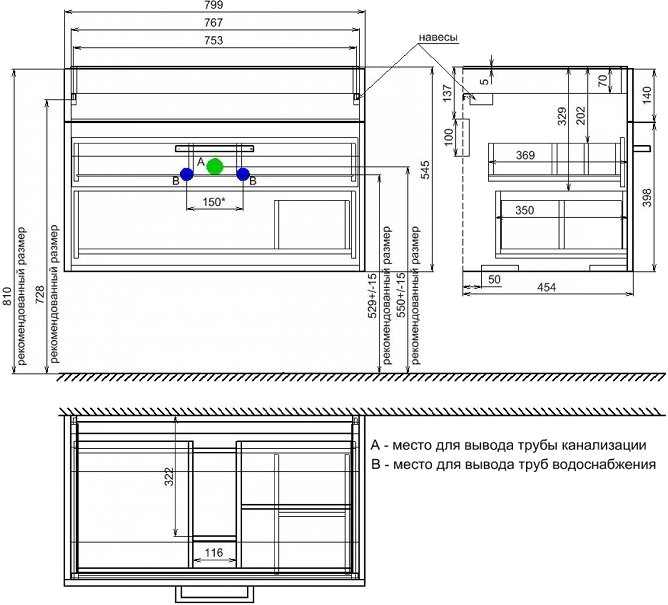 79.9x54.5x45.4 см / без учета умывальника / мм