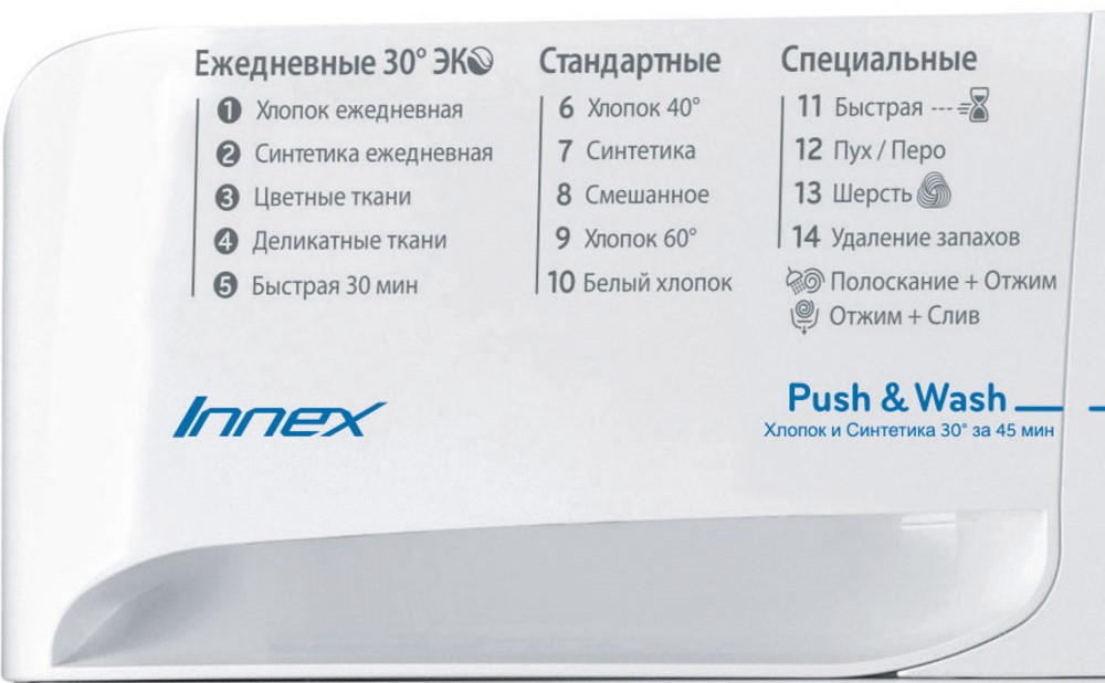 Выбор скорости отжима, Выбор температуры стирки, Отмена отжима, таймер оповещения, Контроль баланса, Контроль за уровнем пены