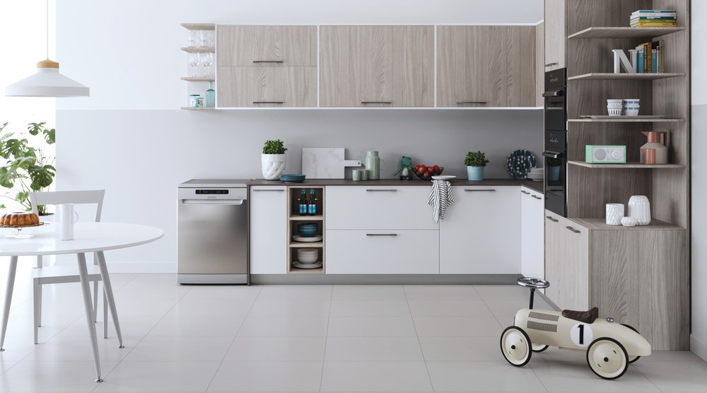 Посудомоечная машина Indesit DFC 2B+19 AC X в серебристом исполнении представляет собой надежное и экономичное решение для автоматизации мытья посуды.