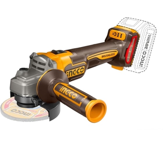 Аккумуляторная УШМ INGCO 20В, BL без АКБ и ЗУ CAGLI21154, 115 мм, 9000 об/мин