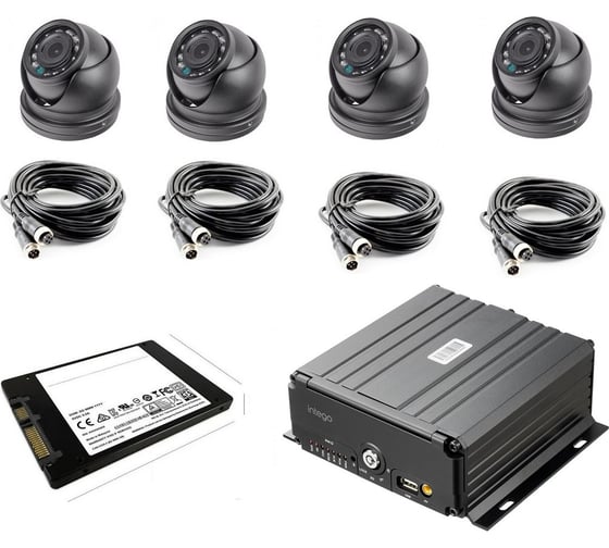 1 ТБ Внутренний SSD-диск Intego, 1 кабель подключения камеры Intego C04 (10 метров), 1 кабель подключения камеры Intego C04 (15 метров), 2 кабеля подключения камеры Intego C04 (5 метров), 4 камеры Intego InCam, Многоканальный видеорегистратор NX-460A