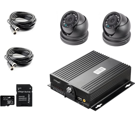 2 кабеля подключения камеры Intego C04 (5 метров), 2 камеры Intego InCam, Карта памяти 512Gb, Многоканальный видеорегистратор NX-400A