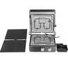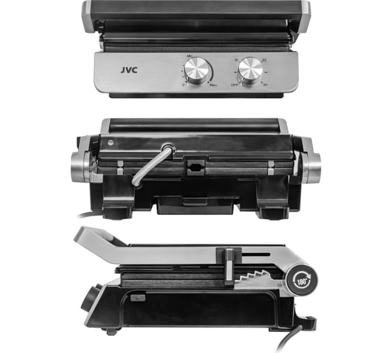 антипригарное покрытие, индикатор нагрева, лоток для жира и сока, открытие на 180°/положение барбекю, регулировка температуры, ручка с защитой от нагревания, съемные пластины, таймер обратного отсчета, термоизолированный корпус