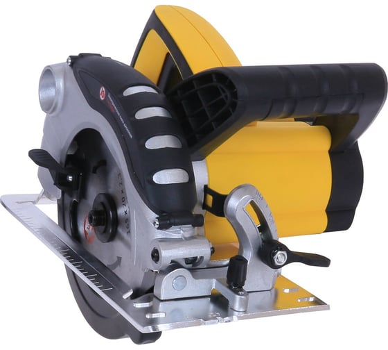 Обрезиненная рукоятка для комфортной работы с Калибр ЭПД-1500/165D 6651, Пиление заготовок с наклоном под углом до 45°, Регулировка глубины пиления, Электродвигатель с двойной изоляцией для дополнительной безопасности