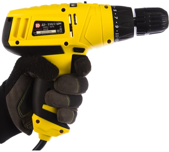 Двухскоростной редуктор, Малый вес - всего 1.35 кг, Наличие реверса для возможности откручивания крепежей, а также удобного выведения застрявшего сверла, Работает от электросети 220 В / 50 Гц, Функция блокировки шпинделя для замены оснастки одной рукой