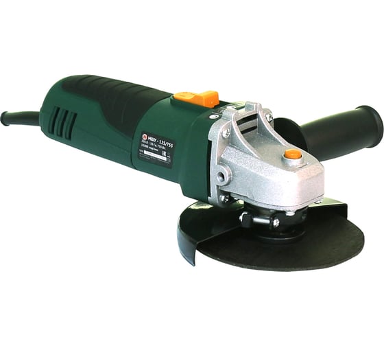 Блокировка шпинделя - для простой смены оснастки, Коллекторный электродвигатель с двойной изоляцией обеспечивает максимальную электробезопасность при работе от сети, Специально разработанный корпус редуктора - для оптимального теплоотвода, Степень защиты, обеспечиваемая оболочкой угловой шлифмашины Калибр МШУ 125/755