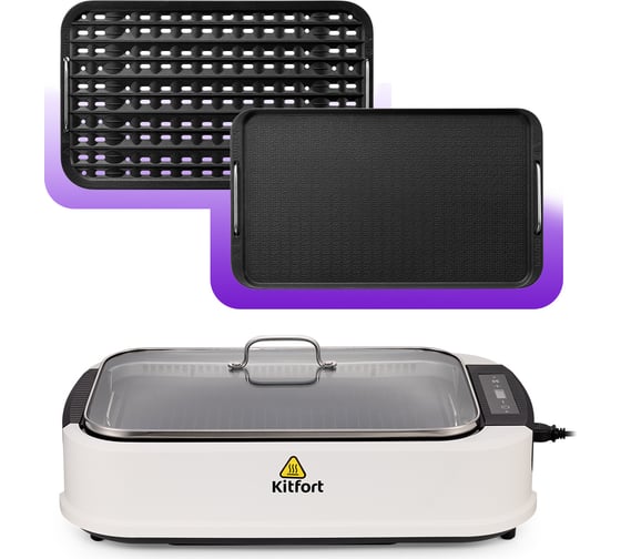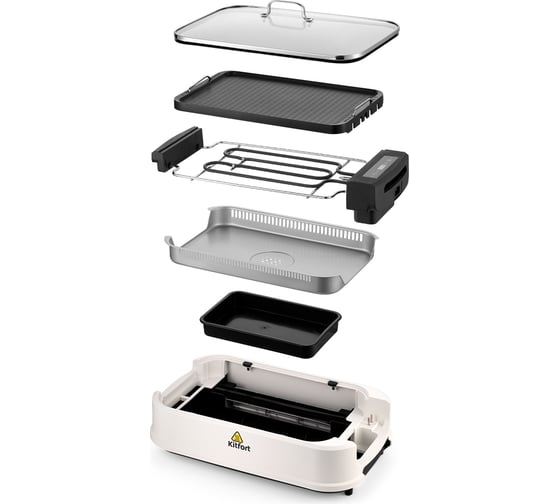Вентилятор с двумя уплотнительными резинками и крышкой, Крышка с ручкой, Металлический поддон, Электрогриль, вентилятор, коллекционный магнит, панель с гладкой поверхностью, панель с ребристой поверхностью, пластиковый поддон, руководство по эксплуатации