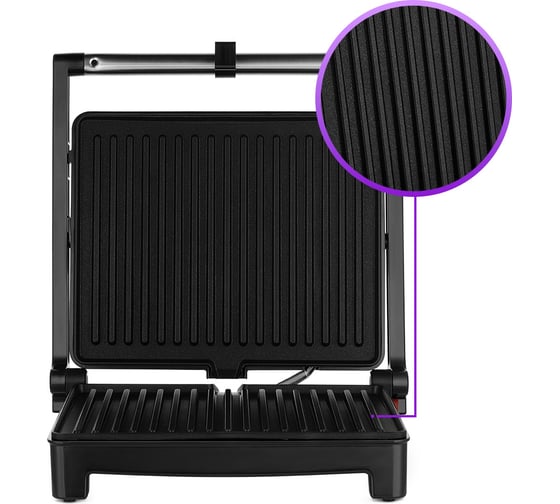 антипригарное покрытие, индикатор нагрева, лоток для жира и сока, регулировка температуры