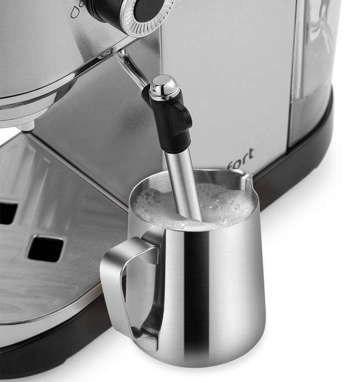 Нарочито практичная конструкция с металлическим резервуаром и пластиковой отделкой облегчает уход и сохраняет аккуратный вид при регулярной эксплуатации. Набор функций сосредоточен на ключевых задачах — стабильная экстракция, подача пара для вспенивания молока и приготовление двух порций одновременно.