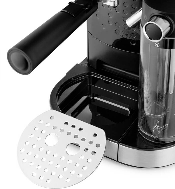 Корпус и резервуар для кофе из нержавеющей стали устойчивы к воздействию влаги и легко очищаются, что облегчает ежедневный уход и сохранение внешнего вида. Съемный поддон для капель ускоряет удаление остатков и предотвращает разливы, а небольшой объем емкостей делает чистку и обновление воды быстрым процессом.