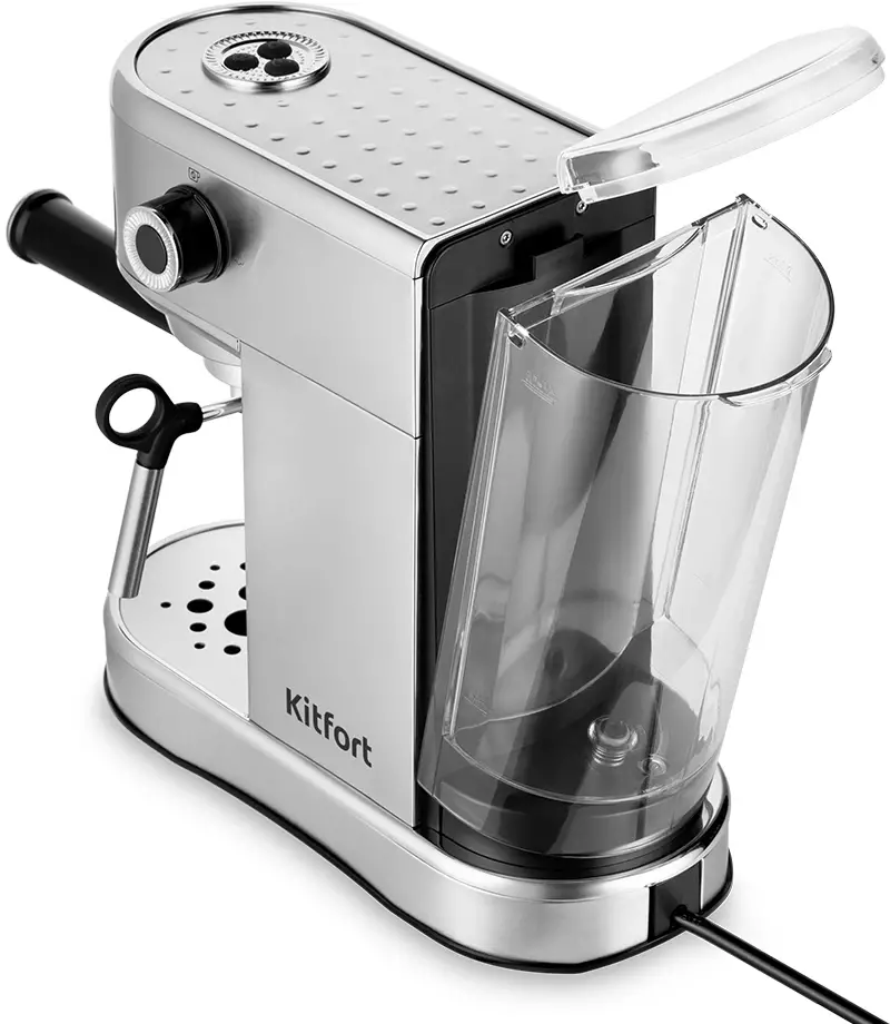 Кофеварка рожковая Kitfort КТ-7193 рассчитана на домашнее приготовление эспрессо и капучино с упором на понятный контроль процесса и удобство повседневного использования. Металлический корпус в нержавеющем исполнении сочетается с механическим управлением и набором функций, которые упрощают подготовку напитков и обслуживание аппарата.