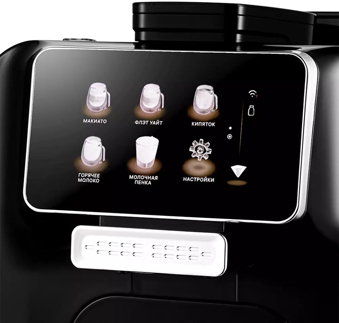 Модель выделяется встроенной жерновой кофемолкой с возможностью регулировки степени помола и набором программ для разных видов напитков, что делает её универсальным вариантом для любителей зернового кофе с разными предпочтениями по крепости и объёму порции.