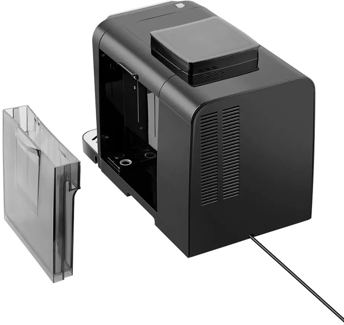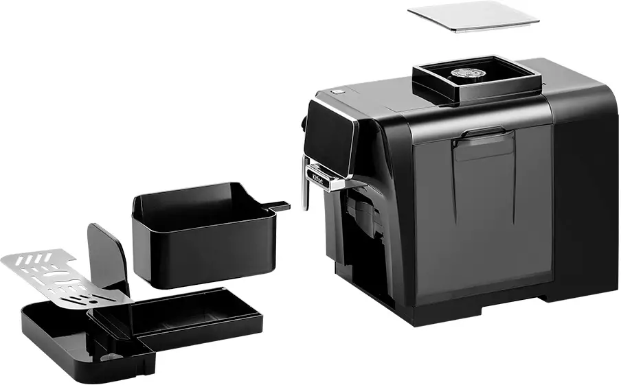 Съемный резервуар для воды объемом 1,5 л, съемный дренажный отсек для капель и съемный отсек для отработанного кофе упрощают ежедневное обслуживание и сокращают контакт с грязными элементами. Встроенная программа самоочистки и информационный дисплей помогают контролировать состояние машины и следовать процедурам ухода без догадок. Энергоcберегающий режим и программируемый таймер позволяют запускать устройство по расписанию и минимизировать расход электроэнергии в паузах.