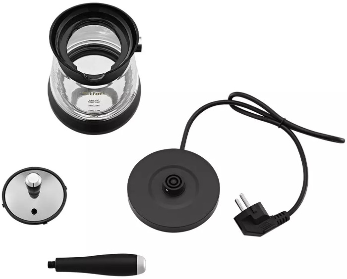 Резервуар для кофе выполнен из нержавеющей стали — это снижает риск посторонних привкусов и облегчает чистку контактных частей. Внешние элементы из стекла и пластика обеспечивают визуальный контроль за процессом и сохраняют компактный внешний вид устройства. Вес и габариты делают турку мобильной и удобной для размещения на кухонной поверхности или в офисе.