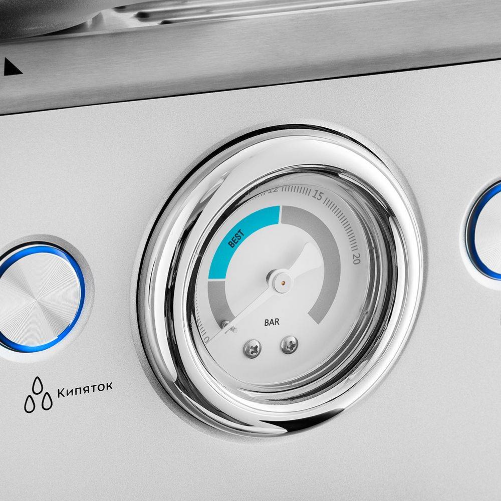 Аппарат рассчитан на работу с молотым и зерновым кофе, мощность обеспечивает быстрый нагрев, встроенный манометр помогает контролировать давление в процессе. Объем резервуара для воды и объем готового кофе дают представление о типичных порциях, а материал корпуса сочетает пластик и металл, что влияет на вес и эксплуатационные свойства. Размеры и вес устройства учитывают размещение на кухонной поверхности и регулярное использование.