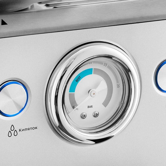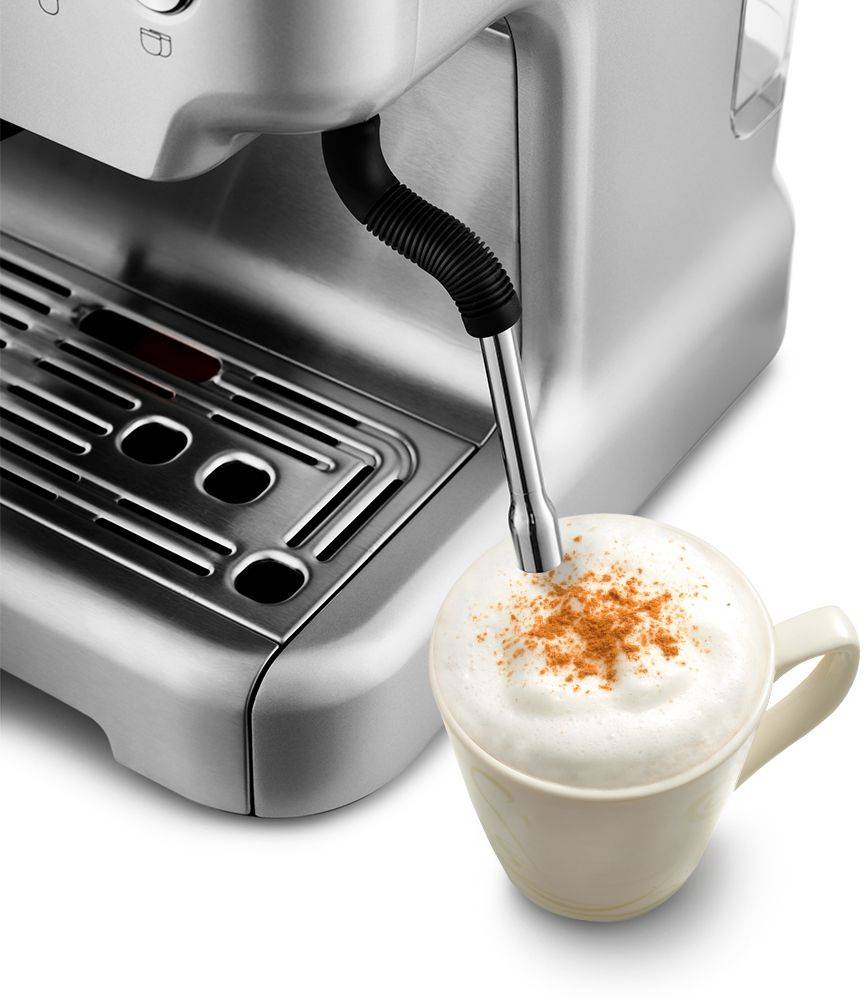 Бойлерная схема нагрева в сочетании с давлением, обеспечивающим необходимую силу для экстракции, дает предсказуемый профиль напитка при приготовлении эспрессо. Ручной капучинатор и функция подачи пара дают возможность формировать молочную пену по желаемой текстуре; отдельные программы для эспрессо и капучино упрощают выбор режима и последовательность действий.