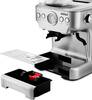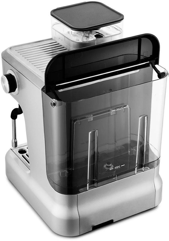 Кофеварка выделяется сочетанием бойлера и высокого давления, встроенной конической кофемолки с регулировкой и крупного резервуара воды — набором, который обеспечивает стабильное приготовление напитков из зерна и молотого кофе.