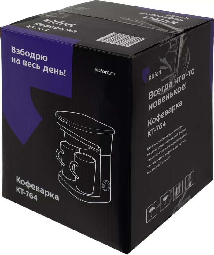 Кофеварка капельная Kitfort КТ-764 — компактное решение для тех, кто готовит кофе дома быстро и без лишних настроек. Небольшие габариты и простой механический интерфейс делают устройство удобным для утреннего ритуала или рабочих перерывов, когда важны скорость, предсказуемость результата и минимальное обслуживание.