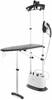Длинный паровой шланг обеспечивает большую свободу движения вокруг одежды, а вес и габариты корпуса позволяют устройству оставаться устойчивым в напольном варианте. В комплекте есть ворсовая щетка, пригодная для удаления ворса и легких загрязнений прямо во время отпаривания.