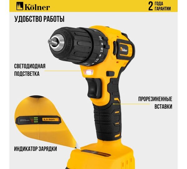 блокировка шпинделя, зарядное устройство в комплекте, индикатор уровня зарядки на корпусе дрели, крепление на ремень, наличие подсветки, наличие реверса, наличие удара, наличие фонаря в комплекте, тормоз двигателя, универсальный аккумулятор