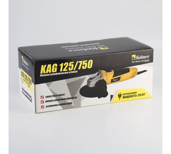 Блокировка шпинделя - для простой смены оснастки, Двухпозиционная дополнительная рукоятка - для комфортной работы угловой шлифовальной машиной Kolner KAG 125/750, Защита от непреднамеренного пуска, Кожух - для защиты от пыли и искр, Компактный дизайн и легкий вес: УШМ Kolner KAG 125/750 легко удерживать и использовать, что снижает утомляемость при длительной работе, Мощность и производительность: 750 Вт обеспечивают достаточную силу для резки и шлифовки твердых материалов, что делает этот инструмент незаменимым для дома и профессионального использования, Надежность и долговечность: Прочная конструкция и качественные материалы гарантируют долгий срок службы инструмента, Эргономичная рукоятка: Обеспечивает удобный захват и максимальный контроль, повышая безопасность при работе