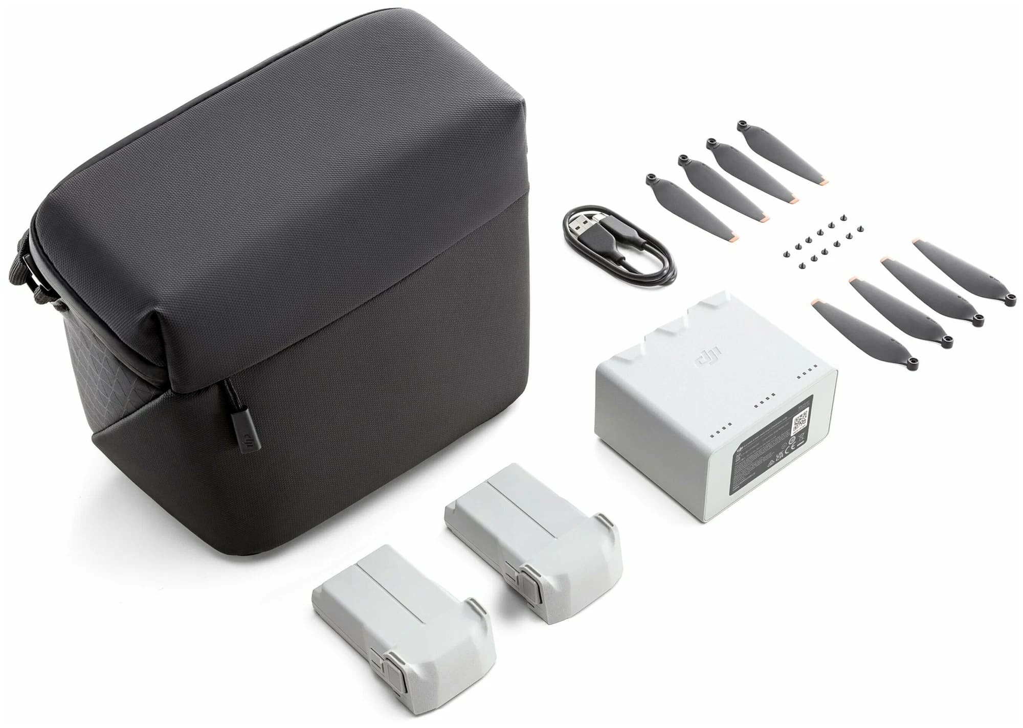 Включает 2 интеллектуальных аккумулятора для полета, двухсторонний зарядный концентратор, 2 пары пропеллеров, 12 винтов, сумку через плечо и 1 кабель USB 3.0 Type-C для передачи данных, что обеспечивает все необходимые аксессуары для комфортного использования.