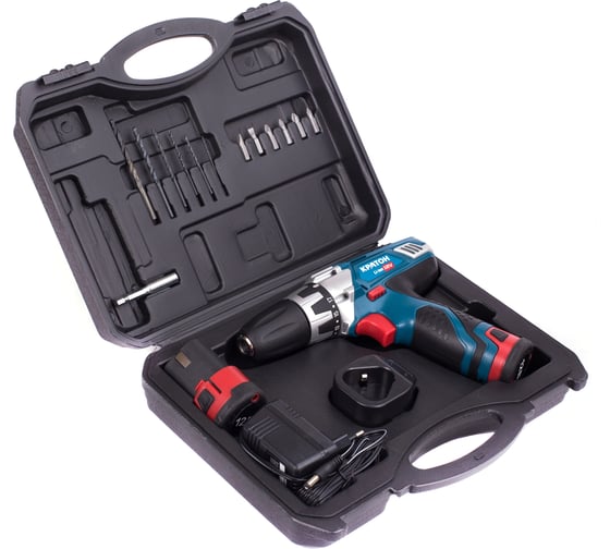 Li-lon аккумулятор: без эффекта памяти, без саморазряда, Быстрозажимной патрон - для простой смены оснастки, Встроенная подсветка - для работы при плохом освещении, Индикатор заряда, Кейс - для удобства хранения и транспортировки аккумуляторной дрели-шуруповерт Кратон CDL-12-2-H 3 11 01 052.Дополнительные характеристики, Максимальный диаметр сверления в твердой пластмассе: 10 мм, Набор оснастки в комплекте, Рукоятка с резиновым покрытием - для комфортной работы, Электронная регулировка частоты вращения - для работы с разными материалами, Наличие реверса