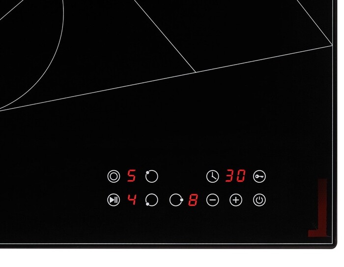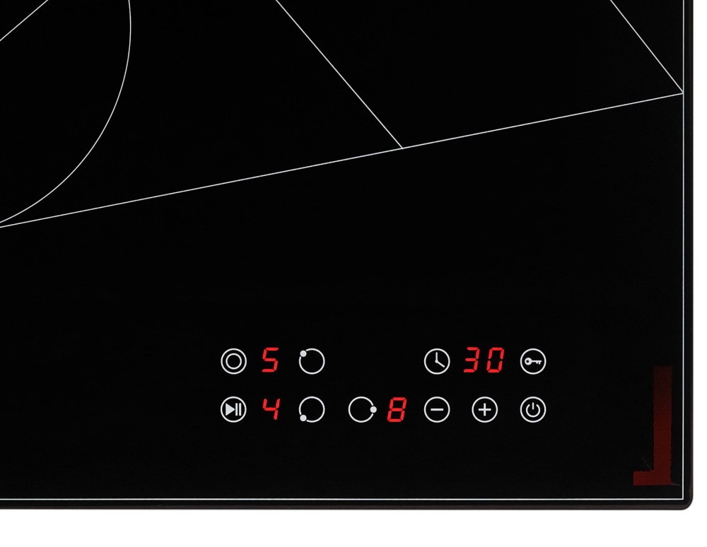 защитное отключение конфорок, индикатор остаточного тепла, кнопка блокировки панели, защита от перегрева, защита от перелива
