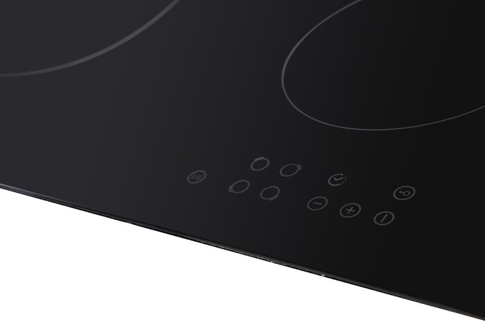индикатор остаточного тепла, защитное отключение конфорок, кнопка блокировки панели