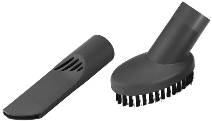 Пылесос комплектуется несколькими насадками: пылевая насадка, щетка для уборки шерсти и волос, щелевая насадка, а также универсальная насадка для пола и ковров. Это позволяет эффективно проводить уборку различных поверхностей, справляясь с разными типами загрязнений. Дополнительные функции, в числе которых регулировка мощности и система «Эллипс Циклон», расширяют возможности и качество уборки.