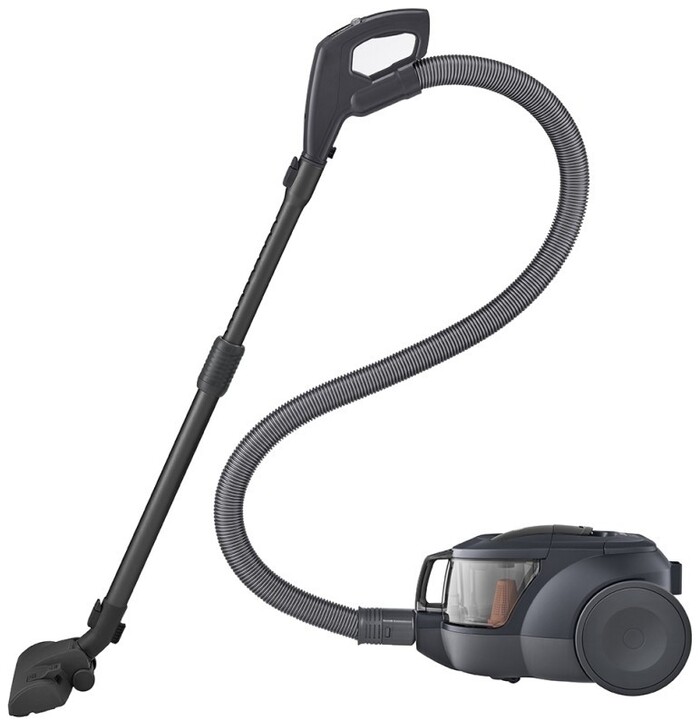 Телескопическая труба из стали оптимально сочетается с пластиковым корпусом пылесоса, обеспечивая надежность и комфорт при уборке. Вертикальная парковка позволяет компактно размещать устройство, а функция автоматического сматывания шнура длиной 5.3 метра облегчает подготовку к работе и уборку оборудования после использования.