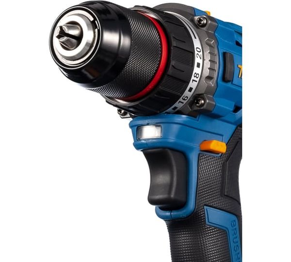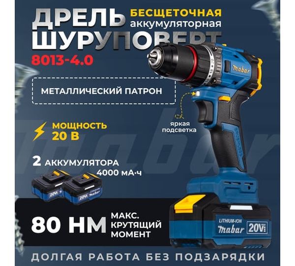 блокировка шпинделя, зарядное устройство в комплекте, индикатор уровня зарядки на корпусе дрели, наличие подсветки, наличие реверса, наличие удара, тормоз двигателя