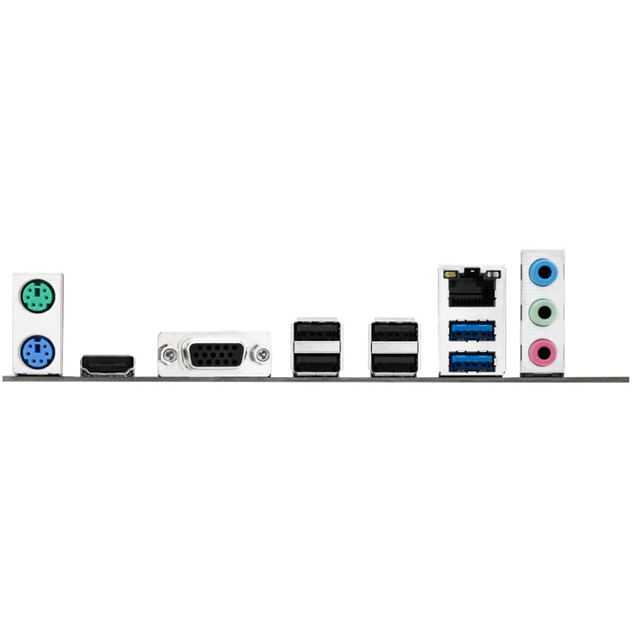 2 x PS/2, 2 x USB 3.2 Gen1, 4 x USB 2.0, HDMI, RJ-45, VGA
