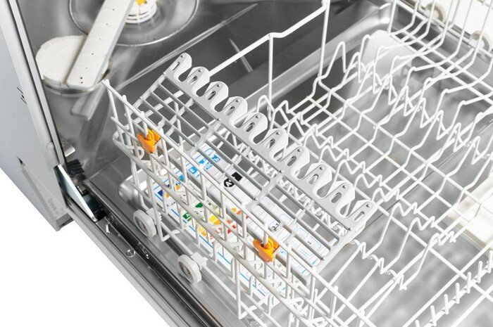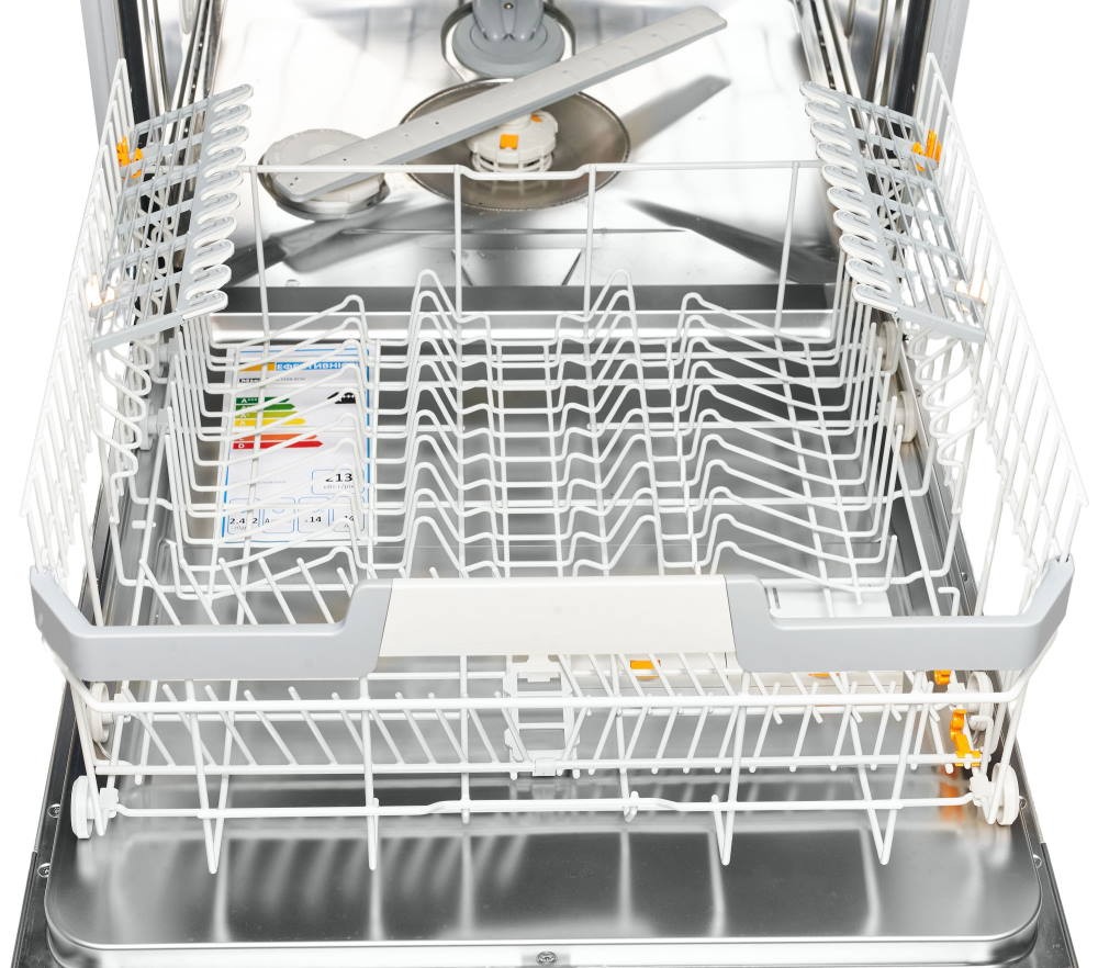Размеры машины (80.5×59.8×55 см) и ее полноразмерный корпус рассчитаны на загрузку до 14 комплектов посуды. Наличие трех спреев и дополнительного третьего уровня загрузки значительно повышают эффективность использования внутреннего пространства. Регулируемая по высоте корзина и комплект поставки, включающая держатель для чашек FlexCare и 3D MultiFlex поддон для столовых приборов, обеспечивают удобство размещения различных видов посуды.