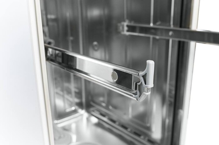 Данная посудомоечная машина выделяется системой подключения к горячей воде, что снижает затраты электроэнергии и ускоряет процесс мойки.