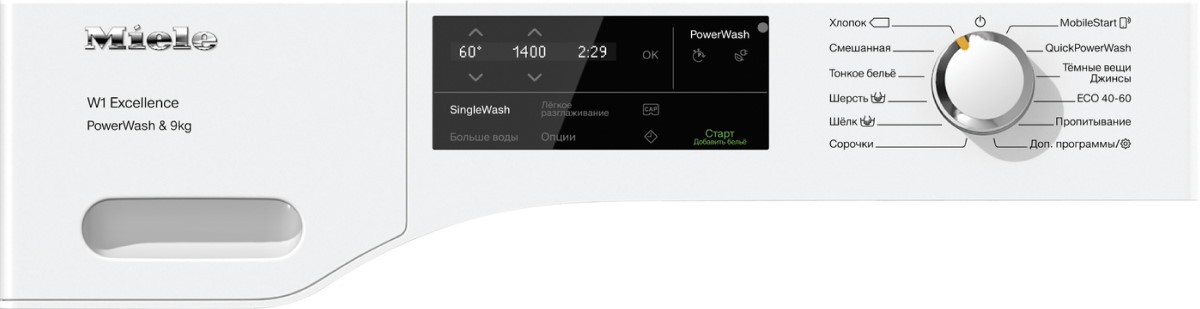 Автовзвешивание, Контроль баланса, Контроль за уровнем пены, Отложенный старт, Очистка барабана, Сигнал окончания стирки, регулировка температуры стирки и оборотов, Технология PowerWash 2.0, снижает потребление воды, электроэнергии и сокращает время стирки