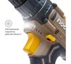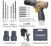 зарядное устройство в комплекте, индикатор уровня зарядки на корпусе дрели, наличие подсветки