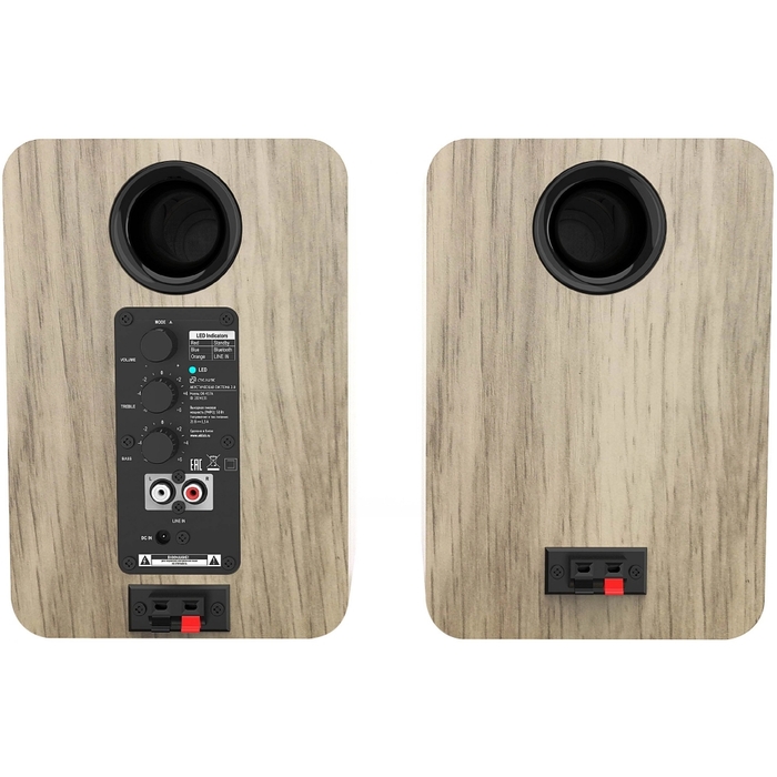 Комплект сочетает традиционный корпус с отделкой под светлое дерево и современные способы подключения Bluetooth для беспроводной передачи и RCA для проводных источников. Встроенный усилитель класса D обеспечивает эффективную подачу мощности при компактных габаритах, а регулировки ВЧ/НЧ позволяют подстроить звучание под помещение и контент. Фазоинвертор добавляет глубины низким частотам без необходимости увеличения корпуса.