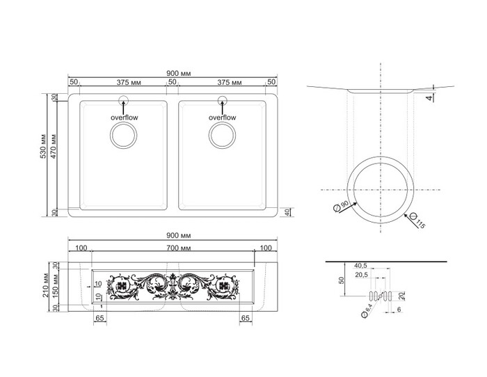 900x530 мм