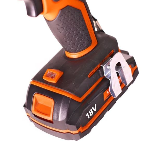 блокировка шпинделя, зарядное устройство в комплекте, индикатор уровня зарядки на корпусе дрели, крепление на ремень, наличие подсветки, наличие реверса, съемный патрон