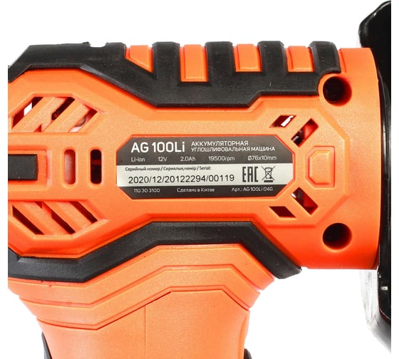 Углошлифовальная машина Patriot AG 100Li 110303100, 76 мм, 19500 об/мин