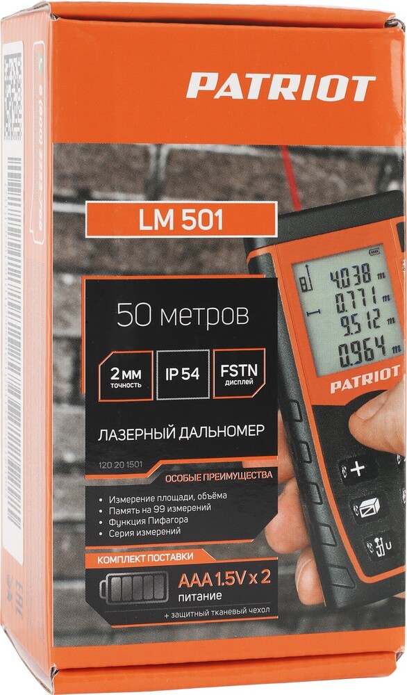 измерение площади и объема, косвенные измерения по теореме Пифагора, сложение и вычитание данных, непрерывное измерение (трекинг), память последних измерений 99 шт